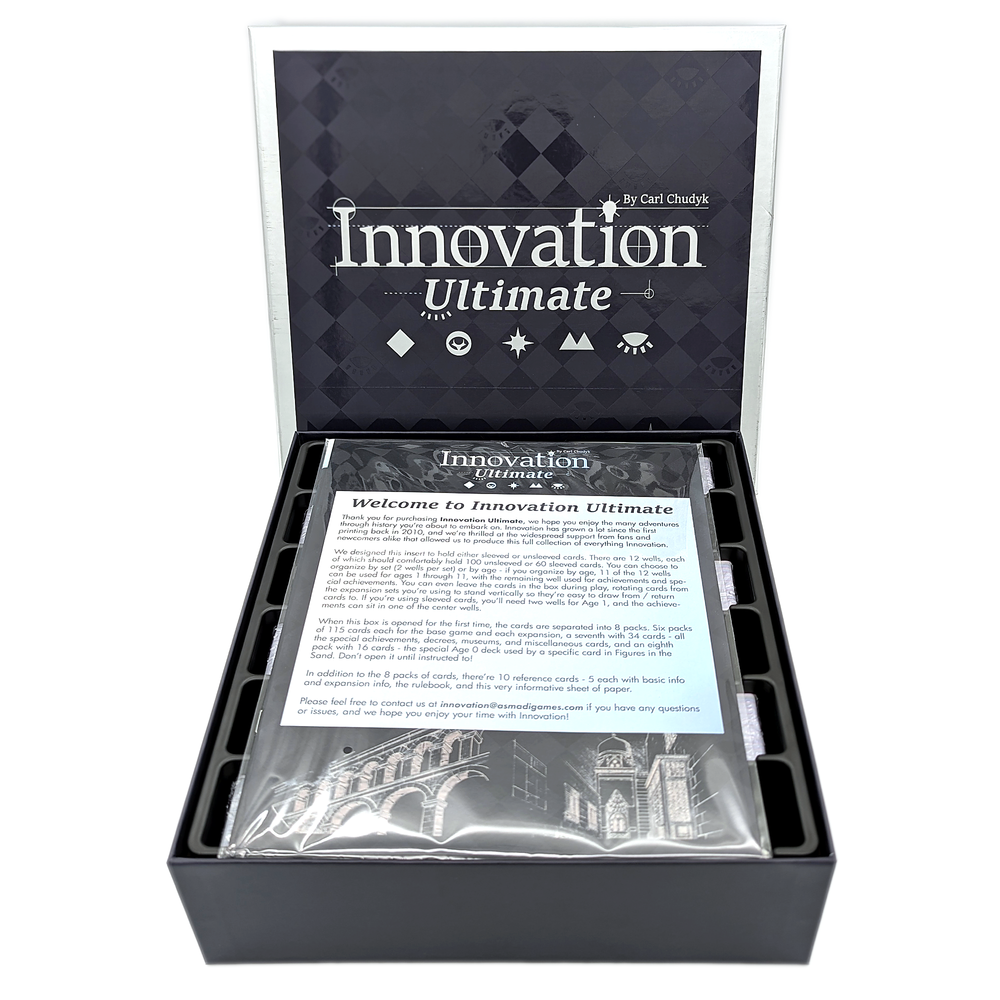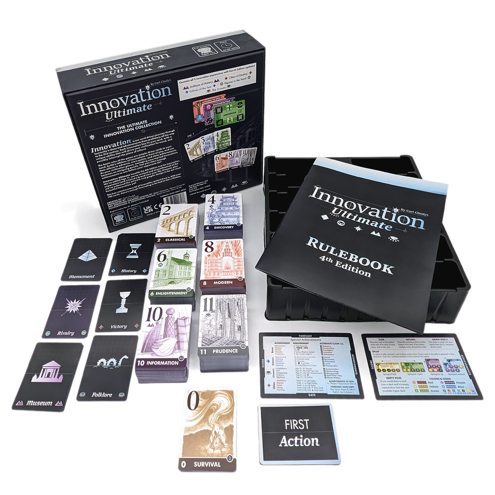 Innovation Ultimate is our comprehensive box-set for Carl Chudyk’s award-winning game,