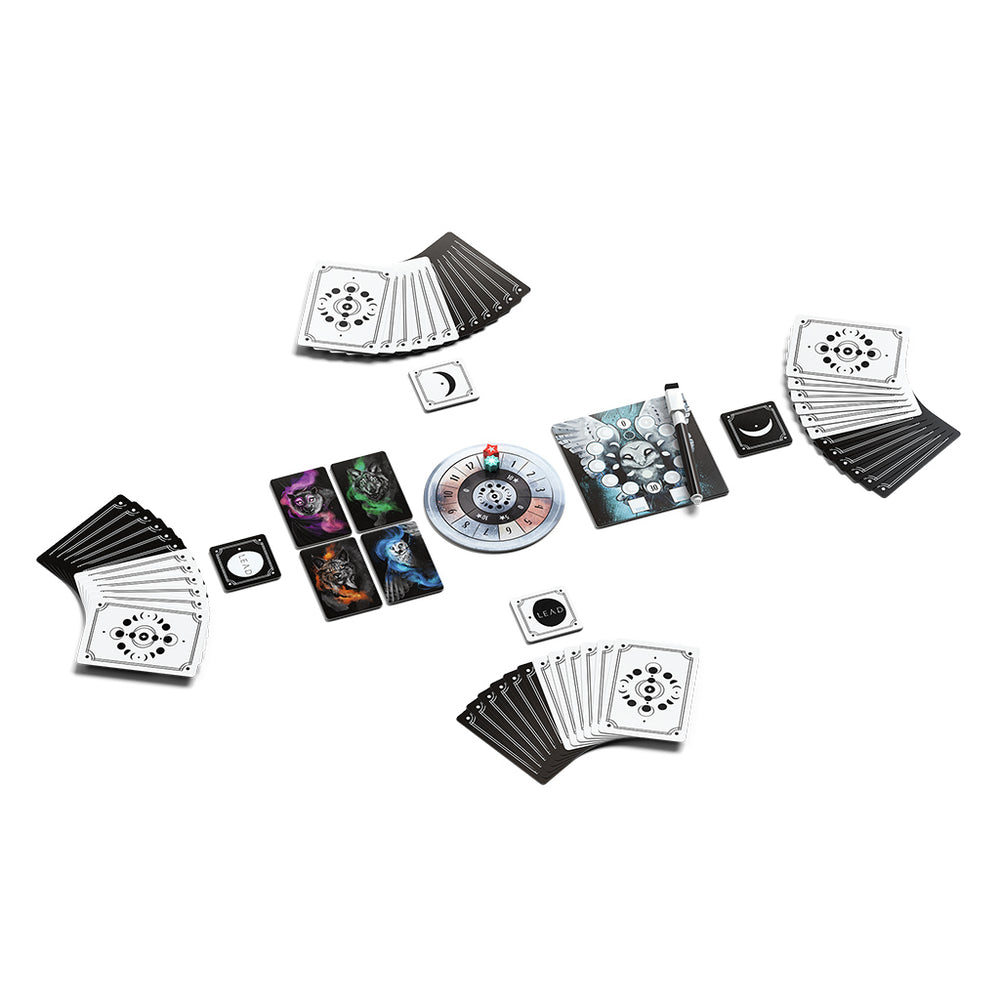 Lunar is a quick-playing, trick-taking game for two or four players in which players combine the phases of the moon and nocturnal animals to form cards played into tricks, which are combined to determine their value within each trick.