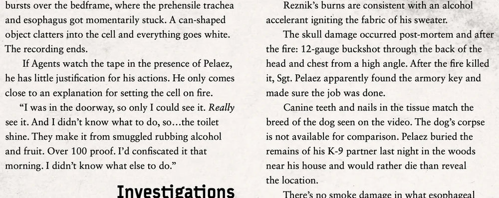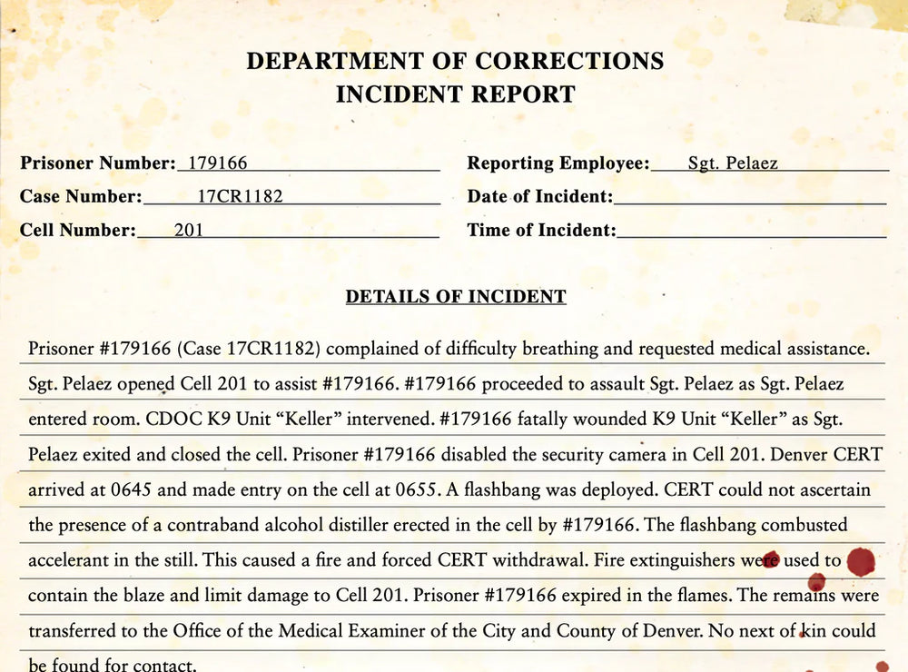 In late 2017, a violent disaster locks down Denver County Jail. A Delta Green friendly happens to be on site. He leaves a frantic voicemail for his Delta Green handler about a prisoner vomiting up an “alien worm.” Your Agents get the call: Fly to Denver under the cover of an FBI/DEA task force. Find out what really happened in that jail cell. If there’s an unnatural threat, trace it to its source and burn it out. Just be careful of the smoke.