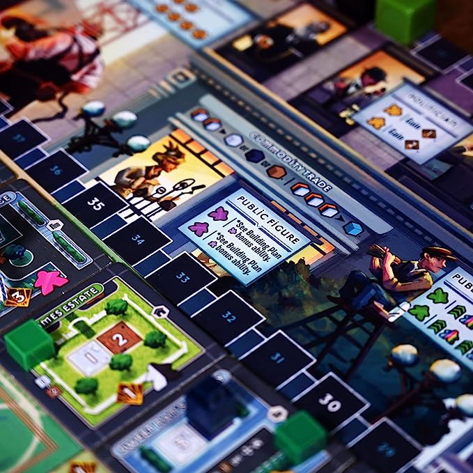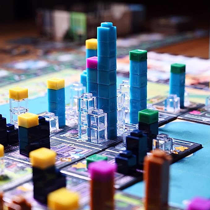 ROLLING HEIGHTS: Roll Your Meeples, Build the City! It's the 1920's and your career as a general contractor is about to take off. You have just started your business in a rapidly expanding city. However, fierce competitors are nipping at your heels. Will you be able to motivate your workers to keep up with the flow of lucrative contracts coming your way, or will one of your crafty rivals find a way to surpass you? In Rolling Heights, players roll workers in the form of meeples. Standing meeples work hard that day and provide special actions and building materials, while face-down meeples provide nothing. You can always push your luck for better rolls, but you might lose valuable materials you need to construct new buildings. Completing buildings gains you prestige, as well as new workers to help you construct even larger buildings, including skyscrapers. Will you construct the next famous landmark?