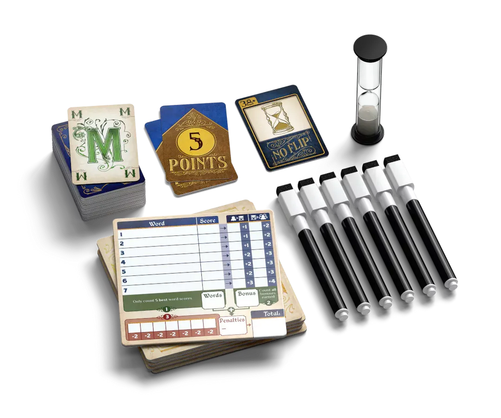 Every other player scores their word and checks for a bonus. Once they've all done this, the fastest player scores a bonus if their score is equal to or higher than half the other player's scores.